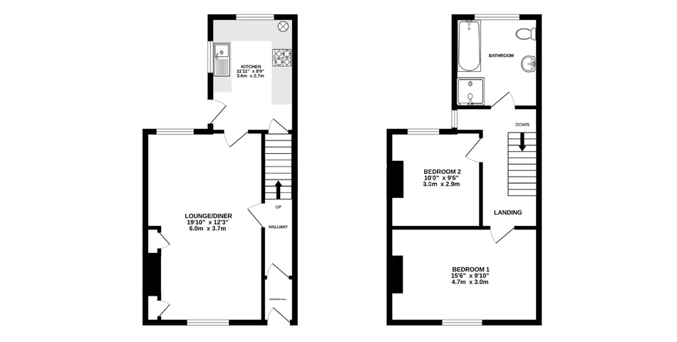 The front door leads into the hallway and with a staircase rising to the first floor. A further door leads into the spacious lounge/diner which enjoys an aspect to the front and rear. The kitchen offers a range of modern fitted units with worktops, a single bowel sink units with mixer tap and space and pluming for appliances. There is also a modern wall mounted gas fired boiler, glazed window to the rear and a door opening out onto the rear terrace.