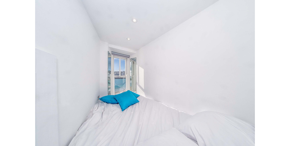 On entering, you are welcomed by a bright hallway with an array of creative built-in storage solutions, a wash hand basin, and a stylish shower room. Saloon-style doors open to a custom-built bed area, perfectly positioned to enjoy beautiful harbour views.