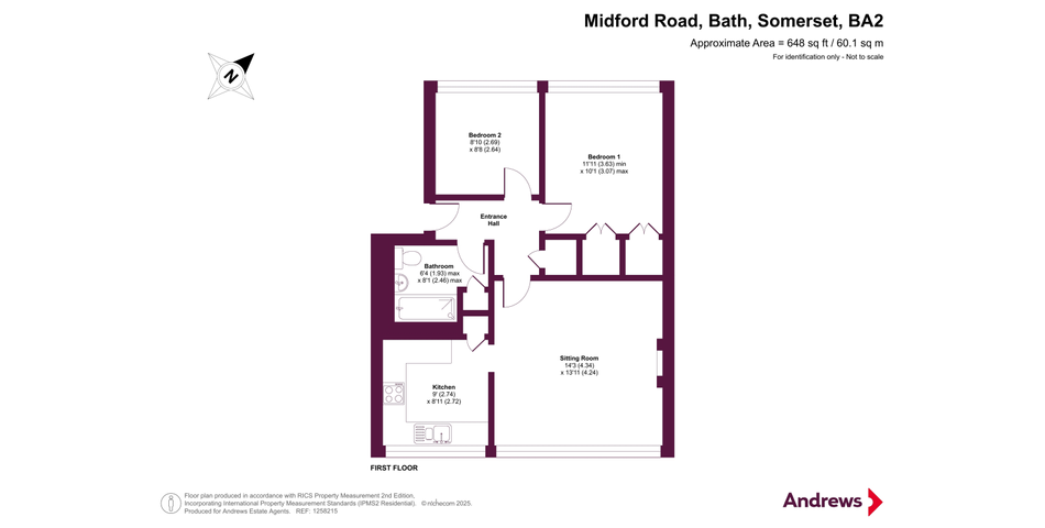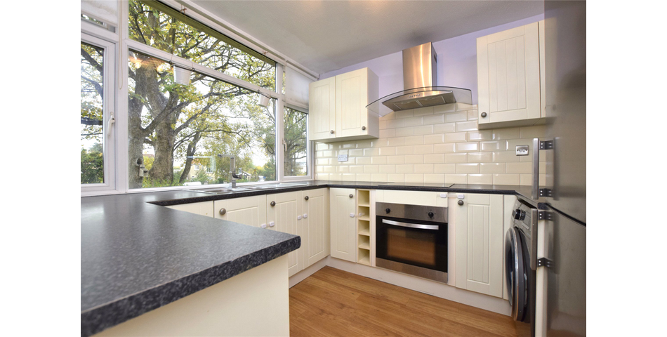 This well-presented first-floor apartment is being sold with no onward chain, making it an attractive option for buyers seeking a quick and hassle-free purchase. The property is filled with natural light thanks to its large windows, creating a bright and airy atmosphere throughout. The reception room serves as a welcoming space, featuring an electric fireplace as a charming focal point. Measuring 14ft 3" by 13ft 11", it comfortably accommodates a dining area. The adjoining kitchen is well-equipped with base and wall units, providing ample storage, along with an integrated oven and space for under-counter white goods. A built-in cupboard creates a convenient pantry. Bedroom one measures 11ft 11" by 10ft 1" and benefits from built-in wardrobes. The second bedroom, currently used as a nursery, would also accommodate a double bed or make an excellent home office. The bathroom is a well-appointed three-piece suite with a shower over the bath, and an additional storage cupboard provides space for a washing machine. Externally, the property benefits from a private garage, with further visitor parking available within the development. The surrounding buildings are set within well-maintained communal gardens, adding to the appeal of this charming home.