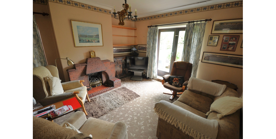Brick fireplace with coal effect gas fire. Timber singled glazed French doors leading into the garden. Radiator. Sliding door into the sun room.