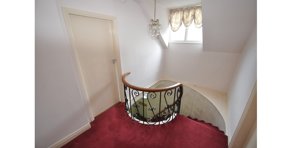 Spacious hallway with feature sweeping staircase with wrought iron balustrade leading to the first floor. Double doors through to the formal lounge and doors into the sitting/dining room, kitchen and w.c.