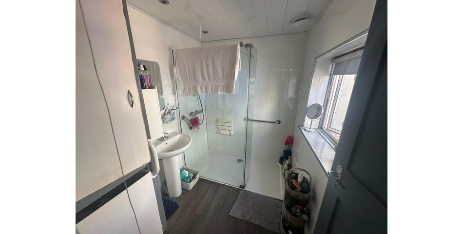 Ground floor: Closed in Entrance Porch, entrance hall, cloakroom/W.C., wet room with walk in shower & wash basin, bedroom 1, living room, kitchen, utility, living extension and garage extension.