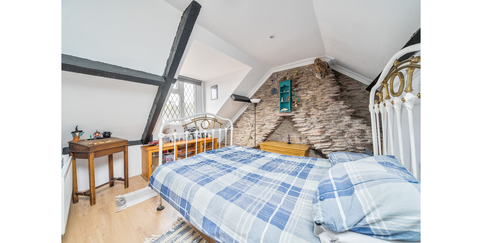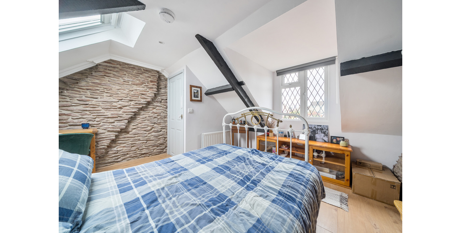The First Floor Landing. With access to both the Master Bedroom & Bedroom Three, the shower room & stairs to the second-floor landing. The Master Bedroom now benefits from fitted wardrobes, a featured fireplace & lots of natural light. Bedroom Three, could easily become a nursery, home office, childs room or even a dressing room. With the reconfiguration of the property, the shower room is now upstairs. With a shower cubicle with dual shower heads. Head up the stairs to the top floor. The guest bedroom could easily become the new Master Bedroom. A great sized double bedroom with exposed brick work & like the current Master Bedroom, plenty of natural light pours in.
