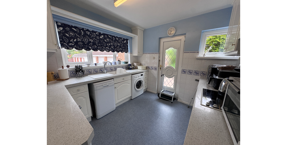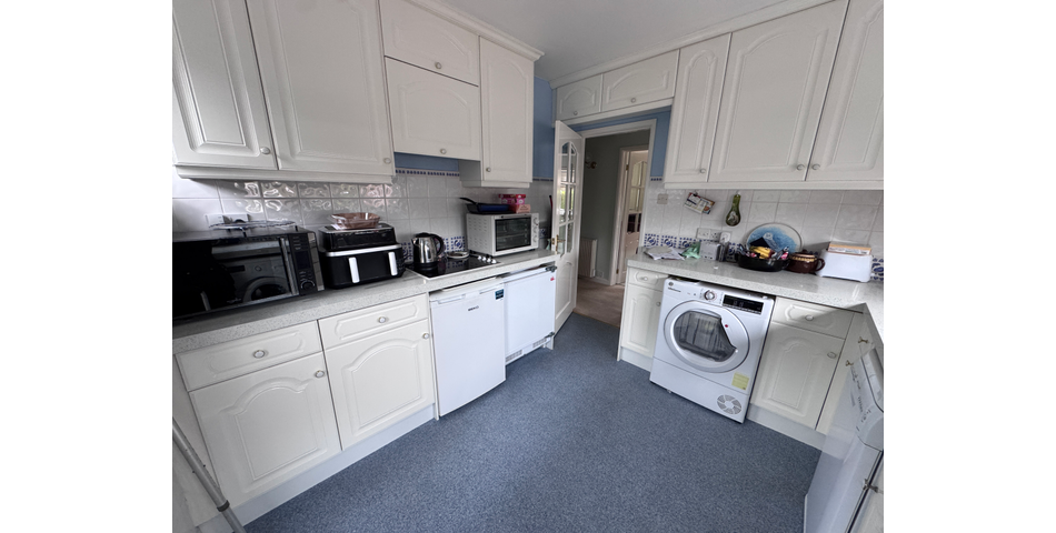 Ground floor: Private flat entrance, hallway, kitchen, living room, two double bedrooms, bathroom/WC.